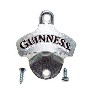 Guinness Starr X metal wall mounted stationary bottle opener. The original Starr X zinc plated cast iron opener. About 3.25 inches high. New in gift box. Screws included. Raised embossed letters with black paint. Perfect for the kitchen or bar.